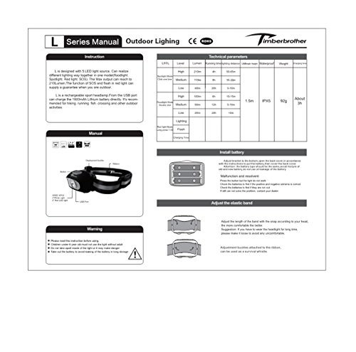 Designed with 5 LED light source. Can realize different lighting way together in one model (floodlight, spotlight, red light, SOS). The Max output can reach to 210 lumens. The function of SOS and flash in red light can supply a guarantee when you are outdoor