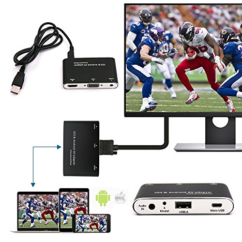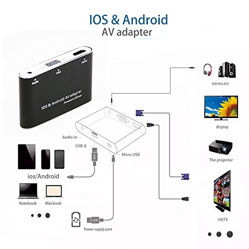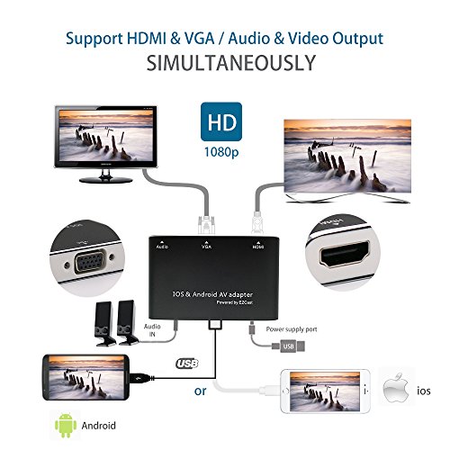 - Support HDMI & VGA / Audio & Video Output SIMULTANEOUSLY, Watch on the Big Screen - The adapter supports mirroring of what is displayed on your device screen to your HDMI equipped TV, display, projector or other compatible display in up to 1080p HD.