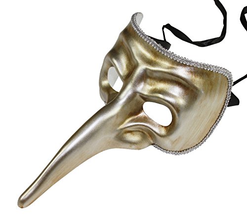 -. Brand : KAYSO -. Department : mens -. Feature : Imported / Exceptional craftsmanship / Perfect for all masquerade events: Masquerade ball, prom, wedding, carnival, etc / One size fits most / Worn with satin ribbons attached to sides of the mask -. ProductGroup : Apparel -. ProductTypeName : ADULT_COSTUME -. Size : One Size -. Title : KAYSO INC Men's Vintage Long Nose Masquerade Mask