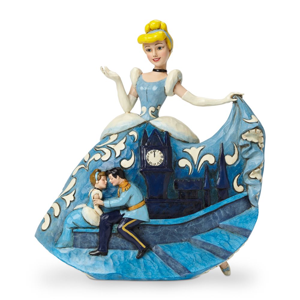 Stroke of midnight Cinderella's filigreed gown displays a romantic tableau of her fateful midnight moment with Prince Charming on this fully sculptured figurine designed by Jim Shore for his Royal Gown series. See more Magic in the details... Jim Shore blends Disney Magic with American folk art to create an elegant piece with timeless appealFully-sculptured figureHand painted. Unique variations should be expectedCelebrating the 65th Anniversary of Walt Disney's Cinderella (1950)Part of the Disney Traditions Collection by Jim ShoreThe bare necessities Stone resin7 1/4' H x 6 1/2' W x 3 3/4' DImported |