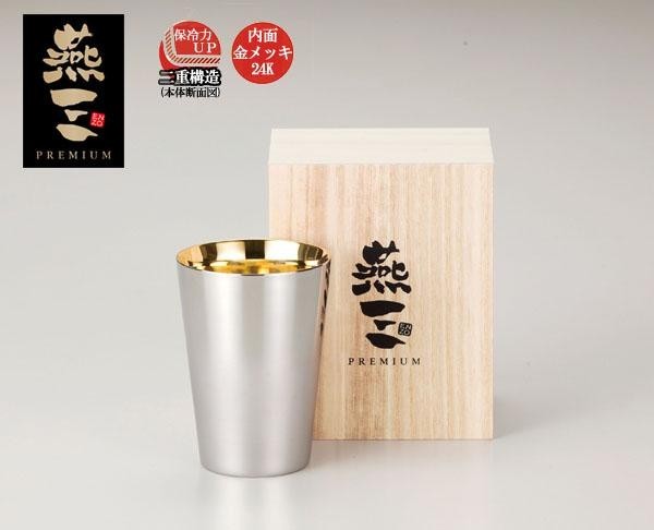 | 「燕三プレミアムタンブラー」は、新潟県燕三条地区でトップクラスの技術と実績を持つ工場の粋を集めて作り上げた逸品です。熟練の職人たちがそれぞれの分野で持ち前の腕をふるい、一品ごとに思いを込めて作り上げた究極のタンブラー。今までとは違う格別な一杯をお楽しみ下さい。 |