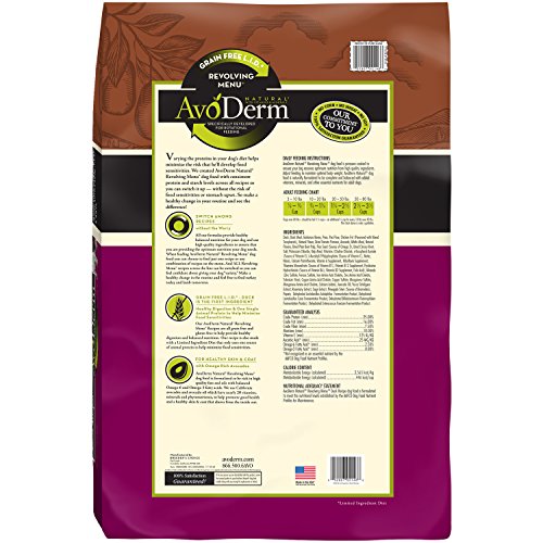 Try feeding your dog all of our nutritious recipes in rotation without the worry of an upset stomach. When feeding AvoDerm Natural Revolving Menu dry dog food, you can choose to feed just one recipe or any combination of recipes on the menu. These recipes were specifically formulated for the option of rotational feeding, so you can feel confident about giving your dog "variety."