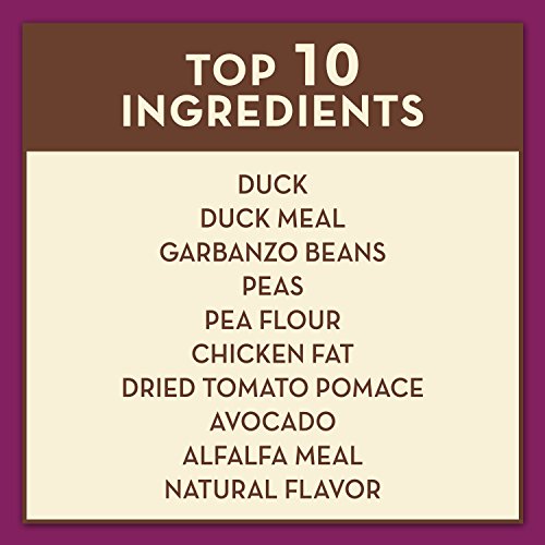 Real duck is used as the #1 ingredient in this recipe to ensure each serving is filled with the ideal proteins to keep your dog healthy and active. We then compliment these flavors with the omega-rich California grown avocados. These nutrient dense superfoods help promote good health and healthy skin to keep your dog's coat shining all season long. Lastly, we incorporate two unique carbohydrate sources, garbanzo beans and peas to keep our recipe grain free and gluten free.