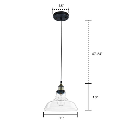 CLAXY Ecopower Industrial Edison Vintage Style 1-Light Pendant Glass Hanging Light