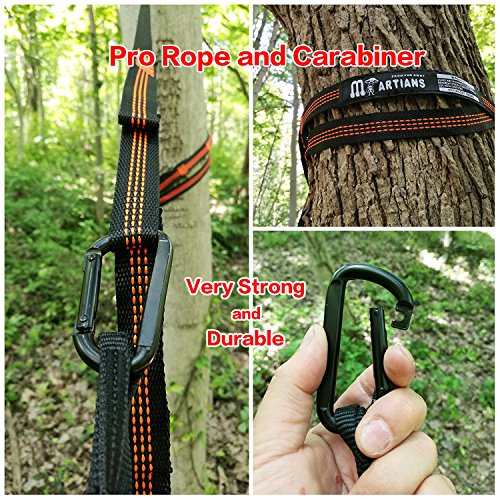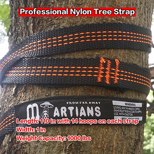 MORE VALURE - Iron,steel and durable carabiners. Concave convex groove design, not easy to slide after closing, higher security. 2 tree straps with 14 loops on each one. 110" of each strap.
