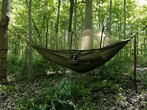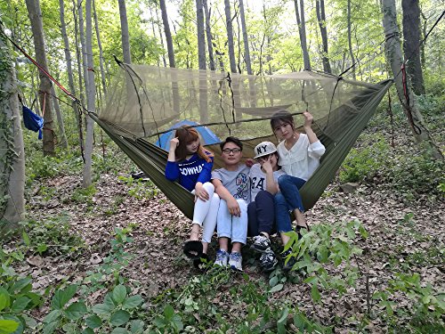 Camping Hammock with Mosquito Net Ultralight Foldable Professional Grade Parachute Nylon Camping Hammock with 28 Loop Tree Friendly Straps Capacity 660LBS for Outdoor Travel Indoor Hiking Backpacking