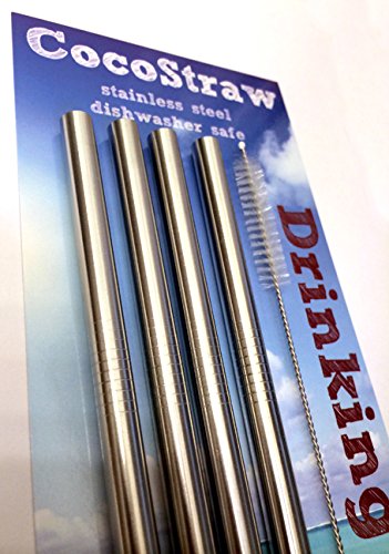 Pack of 4 Wide Straws + Cleaning Brush + works great for to-go cups, mason jars, ball jars, and more! ALSO available in multi-packs of 8, 10, 12, & 16 qty Cocostraws - SAVE$