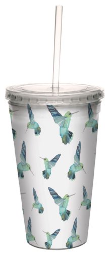 Tree-Free Greetings cc33622 Colorful Blue Hummingbirds by Shell Rummel 16 Ounce Artful Traveler Double-Walled Cool Cup with Reusable Straw