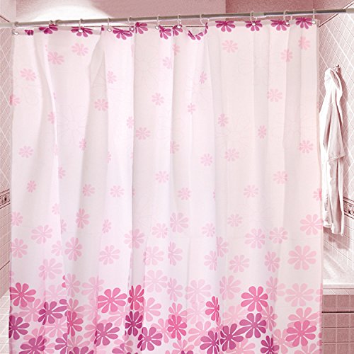 Polyester Waterproof Mildew Resistant Shower Curtain Liner, Pink Peach Flower Shower Curtains