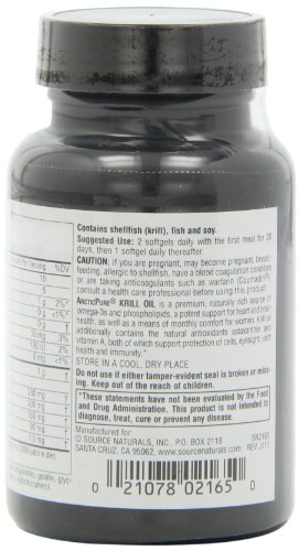 ReleaseDate : 2017-10-04 Studio : Source Naturals Publisher : Source Naturals Binding : Health and Beauty Product Description ArcticPure Krill Oil is a premium, naturally rich source of omega-3s and phospholipids, a potent support for heart and brain health, as well as a means of monthly comfort for women. The omega-3 fatty acids in krill oil include EPA and DHA, renowned for their importance to health. EPA and DHA in krill oil are attached to phospholipids, the primary building blocks of cell membranes. DHA is a primary support of the brain’s neurons and neurological transmitters; EPA influences the chemical mediators that regulate the cardiovascular system. Krill oil additionally contains the natural antioxidants astaxanthin and vitamin A, both of which support protection of cells, eyesight, joint health, and immunity. 0