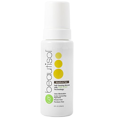 -. Feature : BEAUTIFUL TAN IN A FLASH - Say goodbye to spending hours in a tanning bed! Beautisol's Medium Self-Tanning Mousse provides an immediate bronzing effect when applied, that quickly develops into a gorgeous, natural looking tan. / EASY TO USE - This self tanning mousse goes on smoothly and dries quickly, with blue and green color correcting pigments in the guide color to help facilitate an even, splotch-free application. / GREAT FOR THE SKIN - Chock full of good stuff for the skin like Vitamin E and Jojoba Oil, this self tanner moisturizes & nourishes the skin with anti-aging properties so you always look your best. / NO CONTROVERSIAL INGREDIENTS - This self tanner contains absolutely no parabens, sulfates, PEGs, petroleum derivative or animal based products, and is certified Cruelty-Free by PETA. / NO UNPLEASANT ODOR - Formulated with Beautisol's innovative Pure Scent odor eliminating fragrance technology, unpleasant processing odors are reduced by up to 80%.