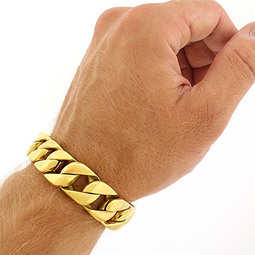 - Title : Stainless Steel Men's Thick Yellow Gold Plated Miami Cuban Curb Link Bangle Bracelet 9"