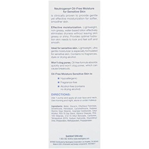 Oil-Free Moisture for Sensitive Skin is a lightweight, water-based moisturizer that provides gentle yet effective moisturization for even the most sensitive skin. This feather-light, dermatologist-tested formula vanishes into skin ;without leaving it greasy or shiny. Extra gentle and irritant-free, it is ideal for sensitive skin. And it contains no alcohol, which can dry skin. Skin is left feeling soft, smooth and moisturized.