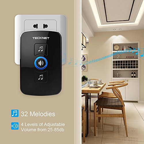 TeckNet WA658 Wireless Doorbell: The WA658 Plug-in Wireless Door Chime and Push Button makes it easy to replace your home's generic doorbell ring with a chime tune that better fits your individual style.
