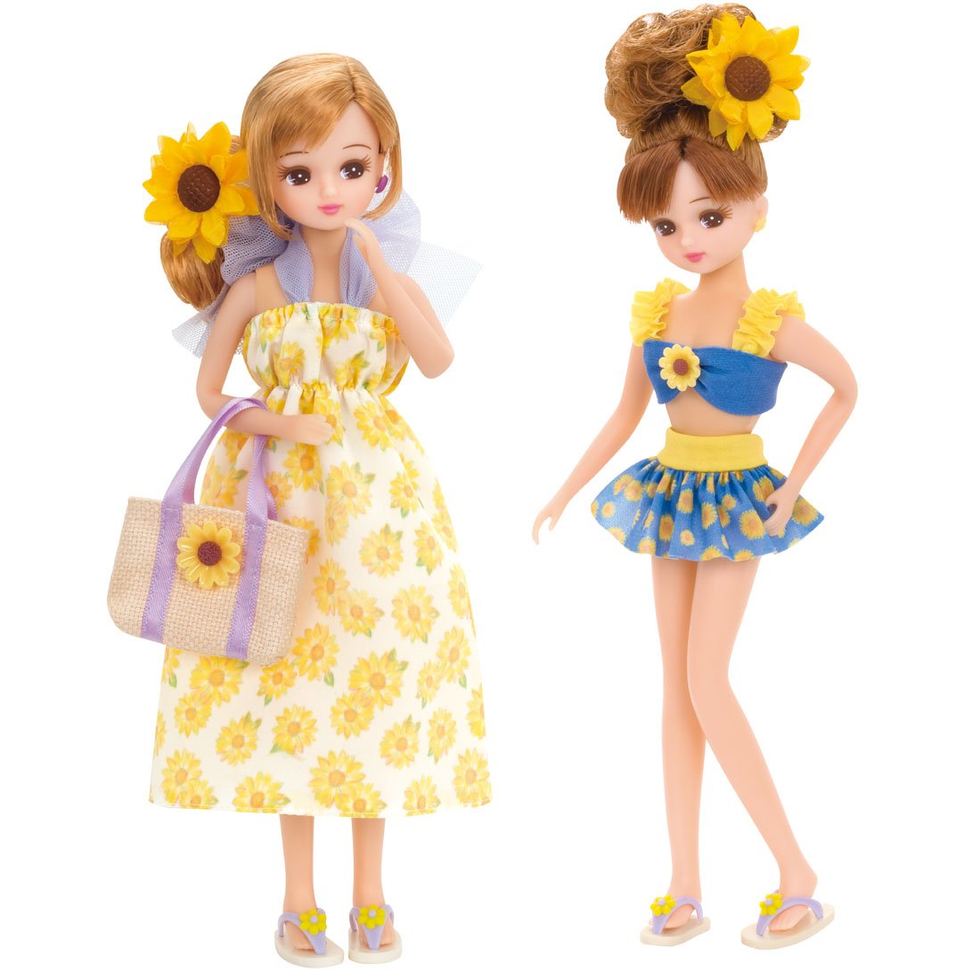 Sunflower pattern swimwear, a 2-way dress that also becomes a long skirt, a set of sunflower hair rubber and bag ♪
