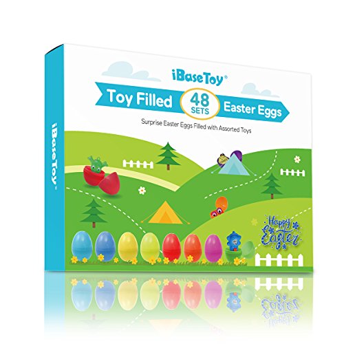 iBaseToy 48 Easter Eggs Filled with 48 Different Toys - Toys Include Cars, Airplanes, Animal Figures, Yo-Yos, Balls and More - 48 Pack