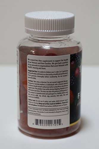 -. Feature : A TASTY FIBER TREAT: Vets Fibers Fiber Gummy is a fun and delicious way to make up for the lack of good fiber in your diet, promoting digestive health, regularity, constipation relief, colon health, heart health, and much more / NATURAL FIBER SOURCE: Offers a purely natural fiber source with chicory root fiber, unlike other popular supplements that use synthetic fiber / METABOLISM AND SATIETY: Promotes a healthy metabolism, healthy blood sugar levels, and helps you feel less hungry between meals / NATURAL FRUIT FLAVOR: Enjoy real fruit flavor in our chewable gummies with delicious orange or mixed berry (raspberry and strawberry)-all without any artificial sweeteners / GIVING BACK TO VETERANS: Inspired by the courageous service of men and women who have served our country, we donate a portion of each sale to organizations that support American veterans and their families