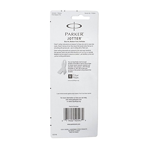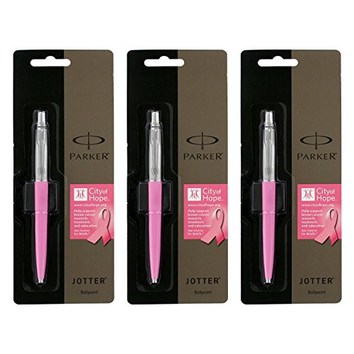 -. Title : Parker Jotter Pink Ribbon Retractable Ball Point Pen, Medium Point, Blue Ink, Set of 3