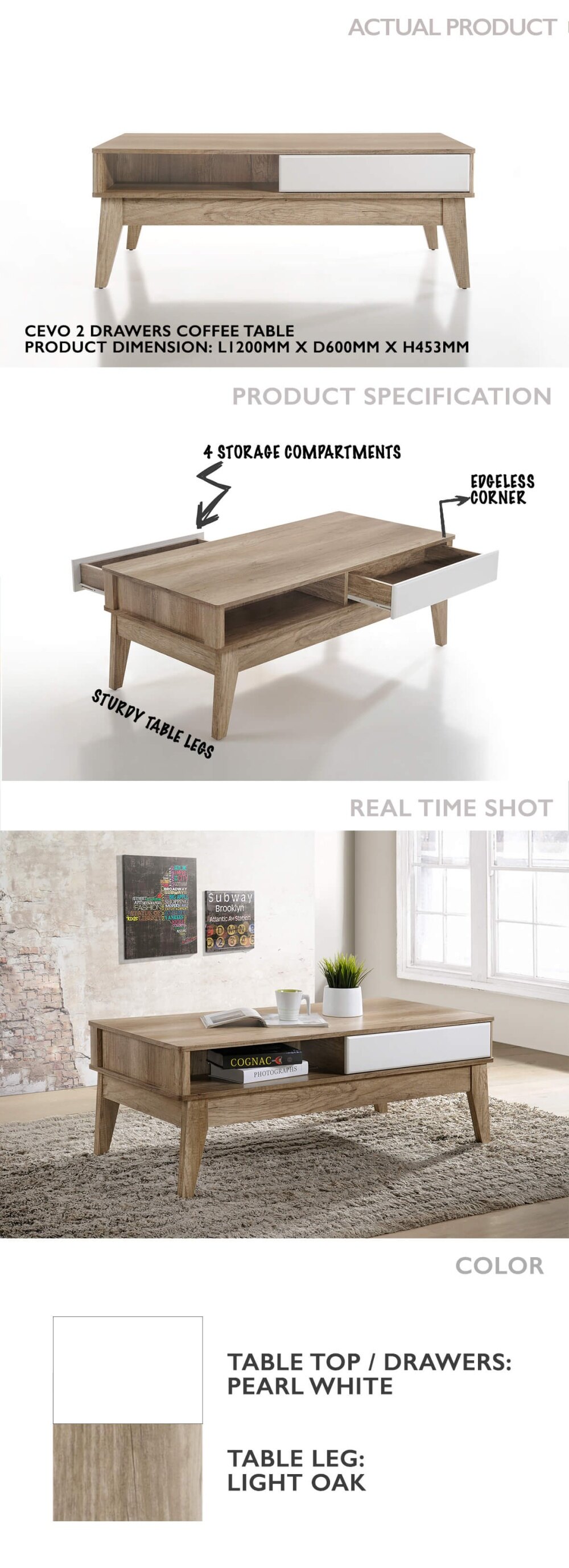 Designed with Scandivanian style, a touch of white accent is put into the design, together with light oak, it gives a warm, calm sensation to your home. Sleek wooden finish complete with storage drawers to hold a range of household items.