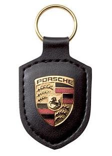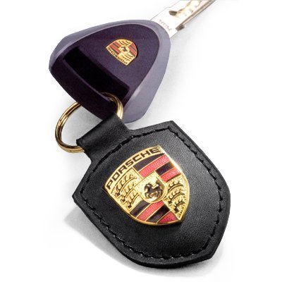 -. Feature : Brand new genuine Black Crest Leather Key Chain / Metal Porsche Crest on leather fob. / Dimensions: 3.4 x 1.6 in. (8.5 x 4 cm).