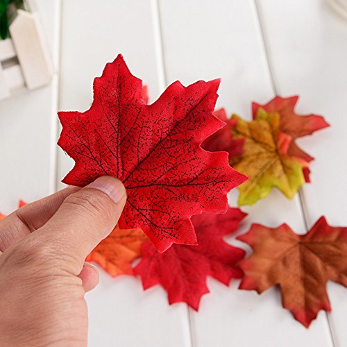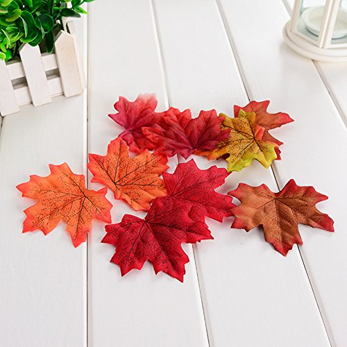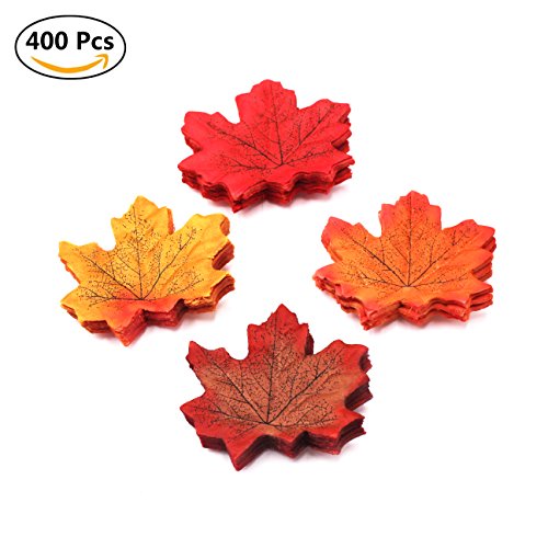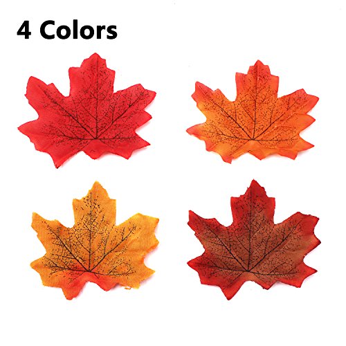 400 Pieces Maple Leaves Assorted Mixed Fall Colored Artificial Maple Leaf Specification: Made of high quality polyester,contains 4 kinds of fall colors,harvest theme.Beautiful and poetic.