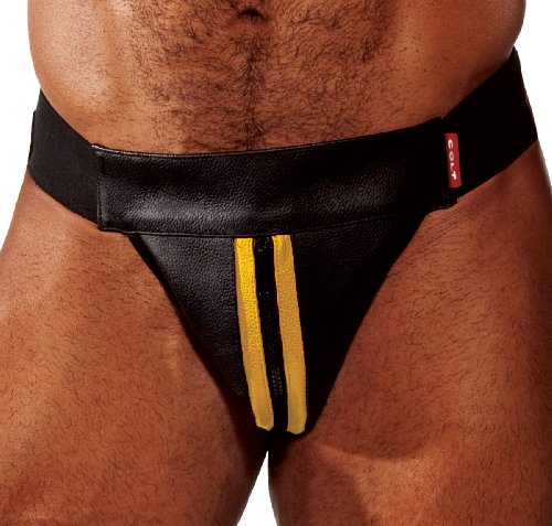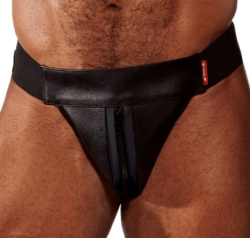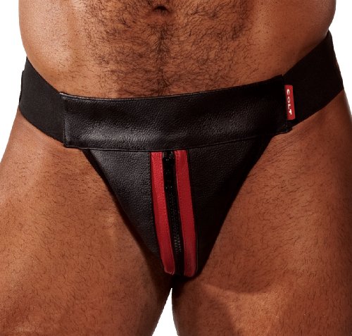 Product DescriptionThe eyecatching COLT Zip Jock in finest black leather with distinctive leather detail, front zip fly and black elastic waistband. All COLT Leather is made from the highest quality leather.0