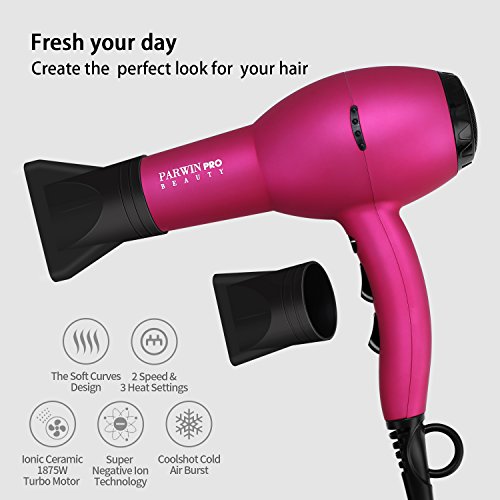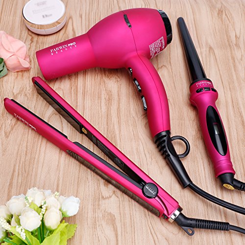 PARWIN BEAUTY 3 Pieces Hair Dryers Set-3 Heat Settings 2 Speed Settings 1875w Hair Dryer Tourmaline Ceramic Flat Iron & Auto Shut Off Curling Iron, Pink