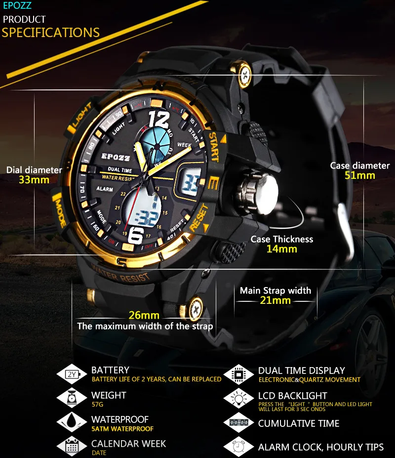 Item Type:Dual Display Wristwatches,Quartz Wristwatches