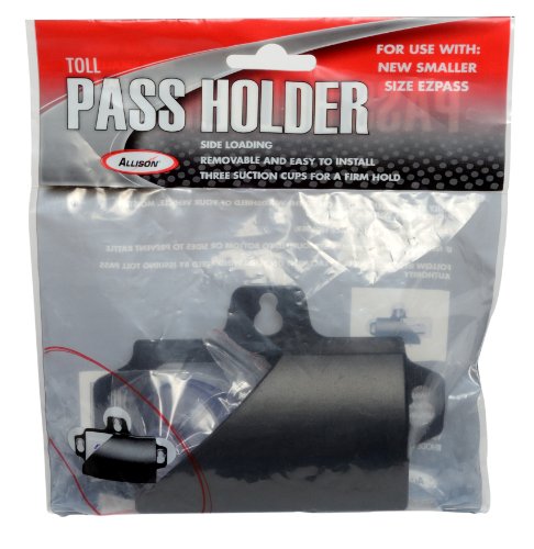 ReleaseDate : 2013-07-04 Studio : Allison Publisher : Allison Binding : Automotive Product Description Toll Pass Holder makes it easy to use your electronic toll tag in multiple vehicles or remove it to prevent theft. The toll pass holder is designed to be used for the new size EZ pass transponders and mounts to the windshield of your vehicle with three suction cups. The pass holder is for use with toll pass transponders in the states of New York, Delaware, New Hampshire, Maryland, Ohio, Virginia, Rhode Island, New Jersey, Pennsylvania, Maine, Massachusetts, Illinois, and West Virginia. Available in white, black, or clear colors. 0