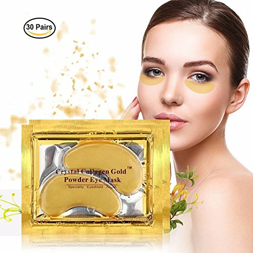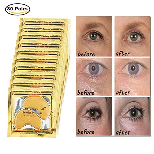 - The 24K gold eye pads: Premium 24k Gold Powder Collagen Eye Patches deeply hydrate the delicate under eye area and increase the skin's elasticity, alleviate under eye bags, ameliorate dark circles, treat eye fatigue, decrease puffiness, smooth crow's feet and fine lines.