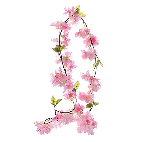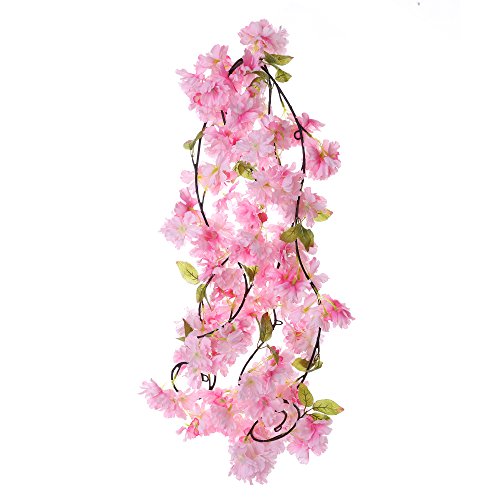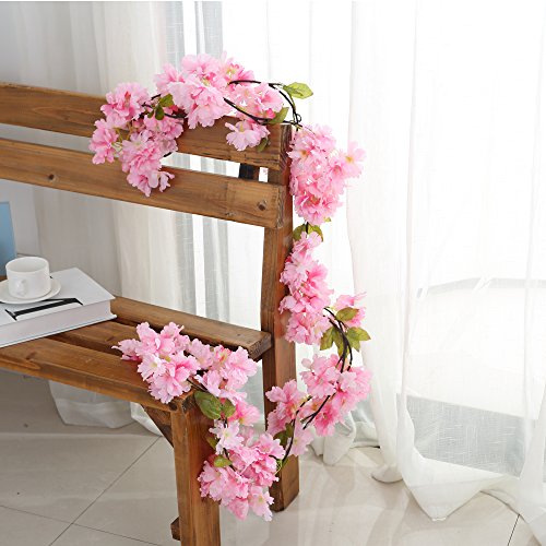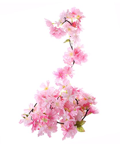 Greentime 2 pcs Artificial Flower Vine 5.9 Ft Fake Silk Oriental Cherry Flowers Wisteria Ivy Simulation Sakura Flowers Plants Foliage For Home Garden Decoration-Pink