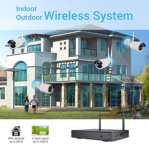 -. Title : Wireless Camera Security System 1080p 4CH HDMI NVR + 4 Pcs 720P(1.0MP) WiFi CCTV Bullet Cameras HD Night Vision Surveillance Outdoor Indoor Waterproof Easy Remote Access Night Vision