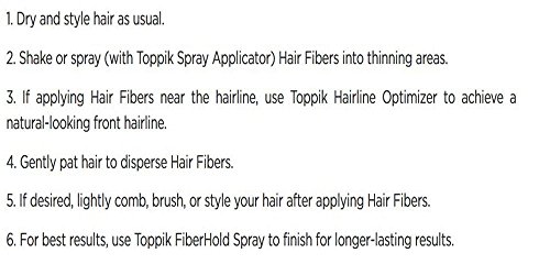 TOPPIK Hair Building Fibers instantly give you the look of thicker, fuller hair. Made of natural, colored Keratin protein that is naturally statically charged, TOPPIK Fibers intertwine with your existing hair for a completely natural look. TOPPIK resists wind, rain and perspiration but removes easily with shampoo.Feature