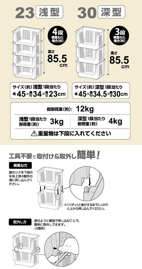 | 仕様 | 【最大段数】 浅型:4段 深型:3段 |