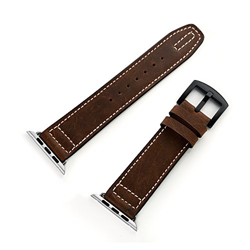 -. Feature : Compatible with 38MM/42MM Apple Watch/Sport/Edition ONLY / Handcrafted with crazy horse leather, the top-grain leather is lightly milled and tumbled to maintain its subtle, distinctive texture,fits your skin comfortably / All Pattern are in stock, equipped with an apple watch metal adapter makes it much easier to replace the watch band / Precise cut holes to fit well for most wrist / Include the band not the watch, this band's color would become brown if you use it for a long time, if you are scratched and discolored, please do not buy