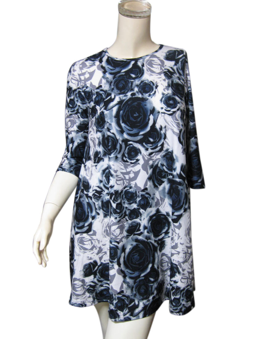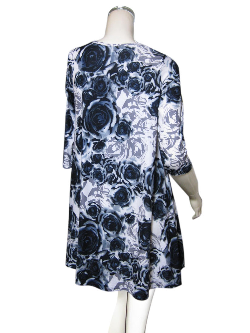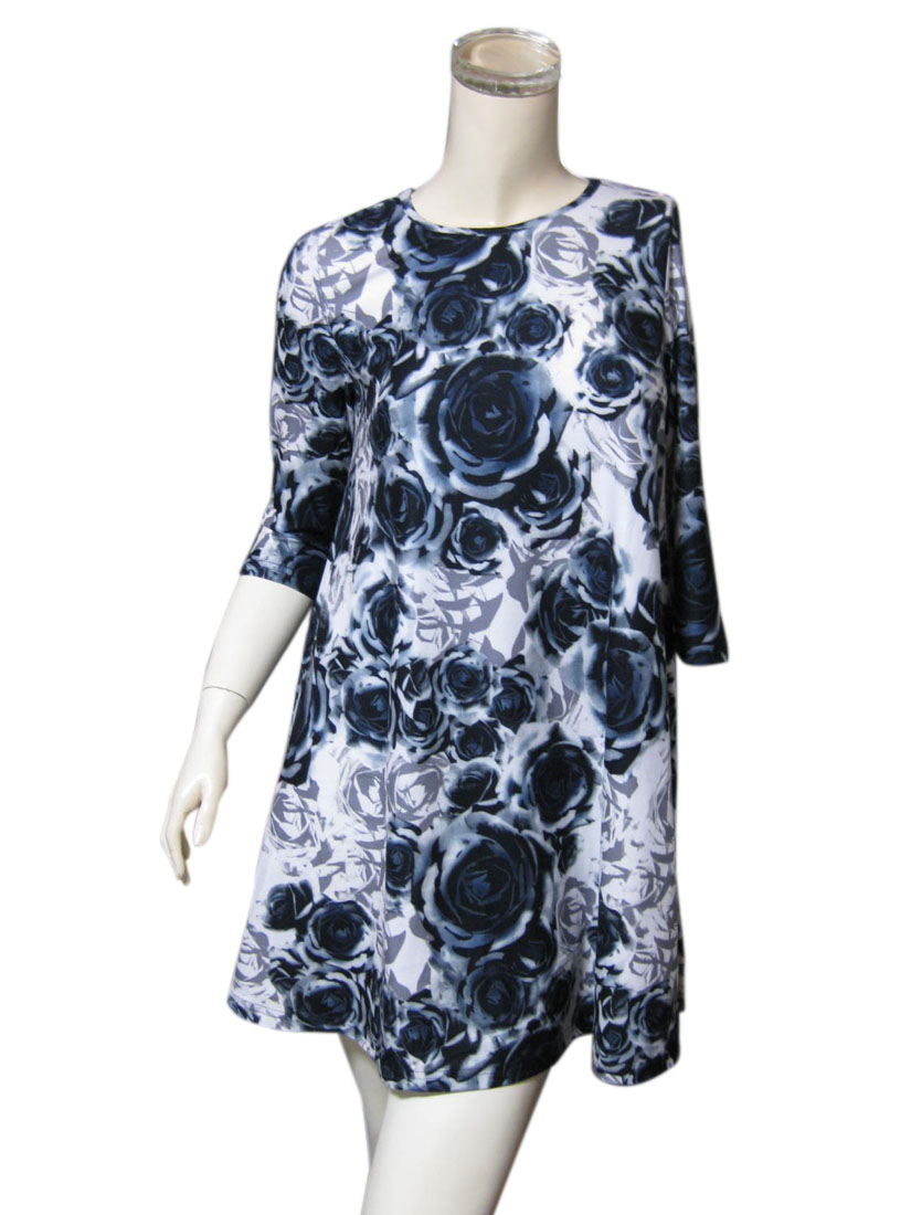 エレガントなグラデーション花柄 スウィングワンピース