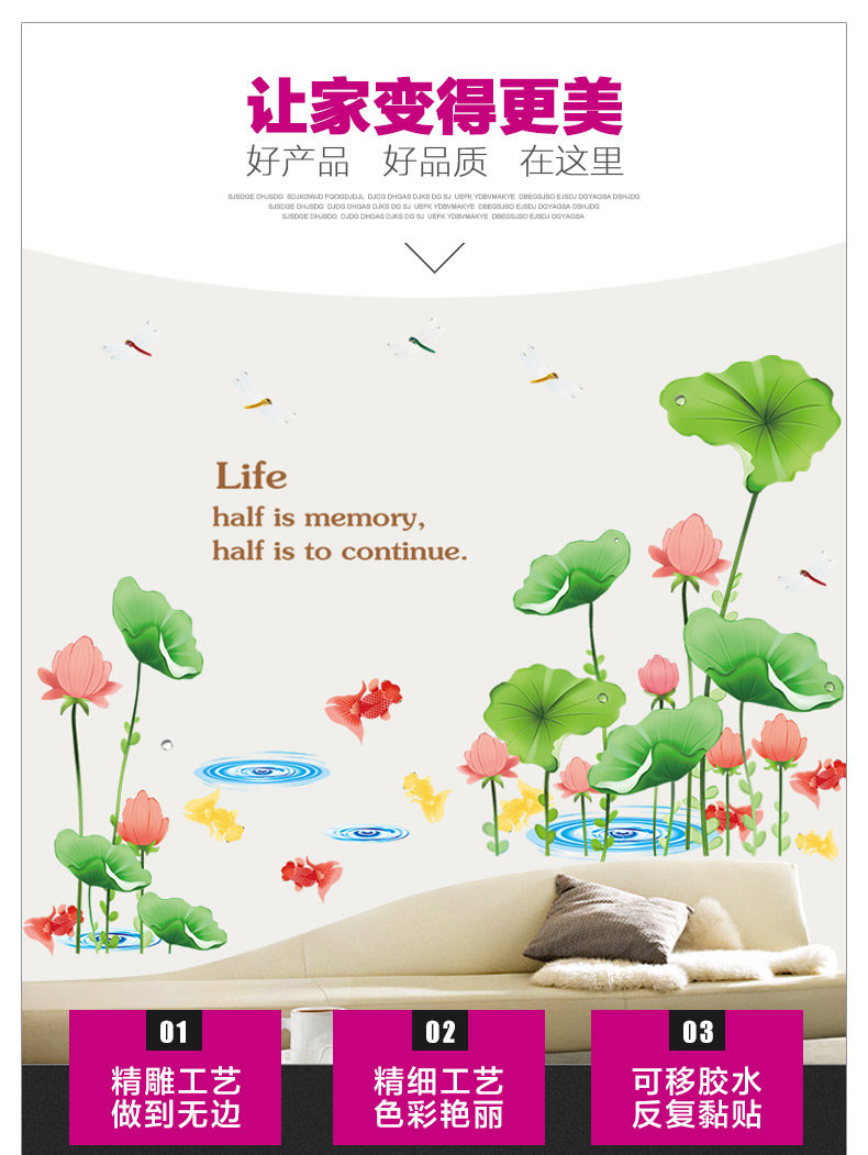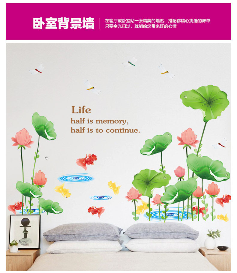 卡通荷花墙贴画宝宝儿童房间装饰卧室装饰品客厅电视背景墙贴自粘