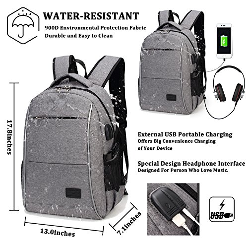 Studio : Winblo Publisher : Winblo Binding : Personal Computers Product Description Winblo Travel Laptop Backpack College Backpack with USB Charging Port Headphone interface for Men Women 15.6 Inch Laptop Macbook Computer ★LAPTOP COMPARTMENT DIMENSION The laptop backpack's size: 13.0" L x 17.8" H x 7.1"W. Laptop compartment holds up to a 15.6 inch laptop. Capacity: 35L. ★USB CHARGING PORT HEADPHONE INTERFACE External USB with built-in charging cable. You can easily and conveniently charge your phone, tablet and other devices without opening up the backpack. Headphone Jack: you can listen to your favorite music on the go hands-free.Please noted that this backpack doesn't power itself,Putting your Power Bank into backpack and connect internal USB cable, then let your charging cable insert external USB port to connect your electronic device. ★LARGE ROOMY The design of the backpack is simple and stylish. This college backpack can not only soundly protect your laptop, and also hold your books, folders, iPad, kettle and other carry-on essentials. It's a very good backpack for working, traveling, hiking, camping, college, school and everyday using. ★SERVICE WARRANTY We offer a 6-MONTH WARRANTY and friendly customer service for every purchase from Winblo. If you need any help, Please "Contact Seller" from Amazon Buyer Central through the order, we will help you within 24hours. Buy Now with Confidence. Pack your laptop, tablet, books, and other essentials for the daily commute inside this large travel laptop backpack from The Winblo. Just Click "Add to Cart" button Now to Experience This for Yourself! 0