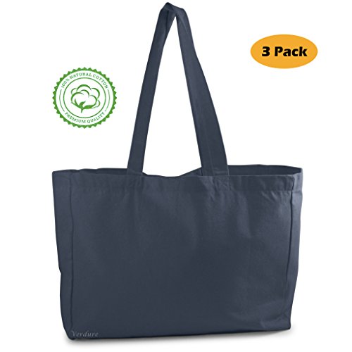 Cotton Canvas Tote Bag (3 Pack, Black Color) perfect for beach, grocery shopping, craft projects - extra thick, large, durable,100% cotton