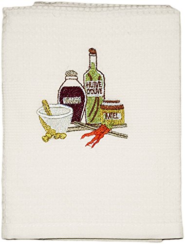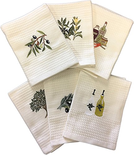 EXCELLENT VALUE: This set includes six waffle kitchen towels, each with its own embroidered design in a beautiful and a classy ivory finish. Each towel measures 19” x 27” when unfolded. Highly versatile for multiple uses and applications around the house.
