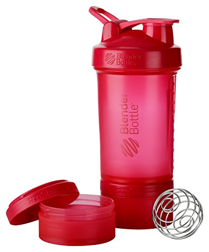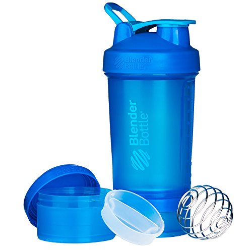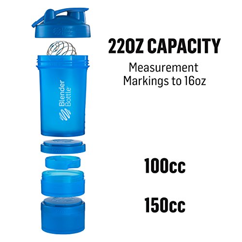 Leak-proof, expandable, and unbelievably powerful, the BlenderBottle ProStak is the all-in-one solution for the serious athlete. The patented BlenderBall wire whisk delivers smooth shakes every time, while the unique twist n' lock jars offer unlimited storage expandability. Keep powders and pills in place - with or without the bottle. The ProStak's unique interlocking jars have individual lids, making it possible to carry pre- and post-workout supplements, meal replacements, and snacks, even without the bottle. The ProStak's screw-on lid and leak-proof SureSeal flip cap keep your shake where it belongs. With a snug twist of the lid and the assuring snap of the flip cap, you're ready for some serious shaking. The BlenderBall wire whisk delivers lump-free protein, nutrition, and meal replacement shakes, even blending flavorful additions such as peanut butter, yogurt, and oat flour. Includes 22 ounce capacity BlenderBottle, 150 cc jar, 100 cc jar, pill organizer and patented BlenderBall wire whisk. The BlenderBottle ProStak is expandable with extra twist n' lock jars (sold separately).Feature