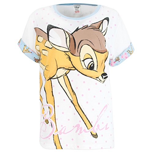 Ladies Bambi pajamas. Getting into your jammies will be no chore with these adorable Bambi pjs! Inspired by the classical Disney movie, this cute Bambi pajama set features a short sleeved top with a large print of Bambi and full length bottoms with an all over print. The top comes with rolled up sleeves for a stylish touch and the bottoms have an elasticated waist that'll keep you comfortable all night long. Made of high quality 100% cotton these Disney Bambi pajama are a must for all fans!Feature