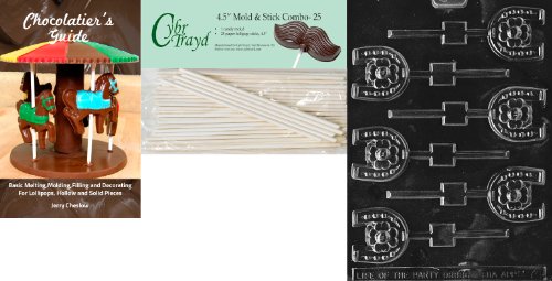 Cybrtrayd 'Horseshoe Lolly' Miscellaneous Chocolate Candy Mold with 25 4.5-Inch Lollipop Sticks and Chocolatier's Guide