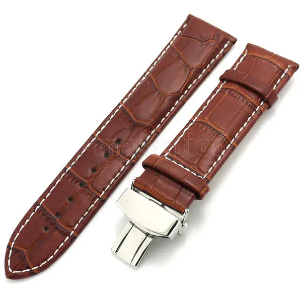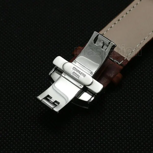 22 미리메터 스틸 나비 버클 라이트 브라운 가죽 밴드 손목 시계 PD012222