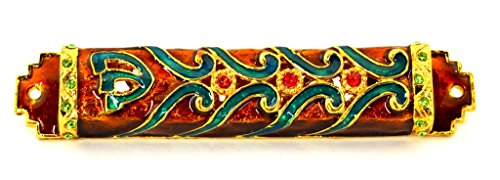 Ciel Collectables Decorative Mezuzah, Hand Set Red & Green Swarovski Crystal, Hand Painted Green & Red Enamel Over Solid Pewter Base, Mezuzah Has A Full Back Cover, Comes in A Beautiful Gift Box