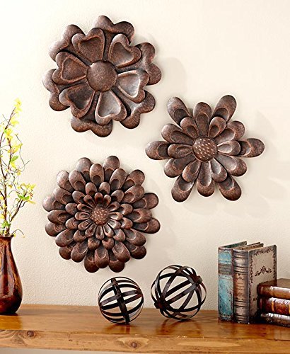 Set of 3 Metal Wall Flowers (Bronze)
