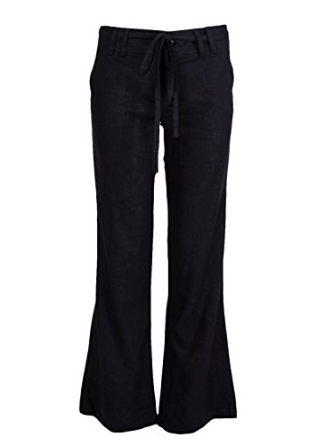 -. Title : Ladies Self Tie Linen Flare Pants, Avail Black & Beige S-3XL