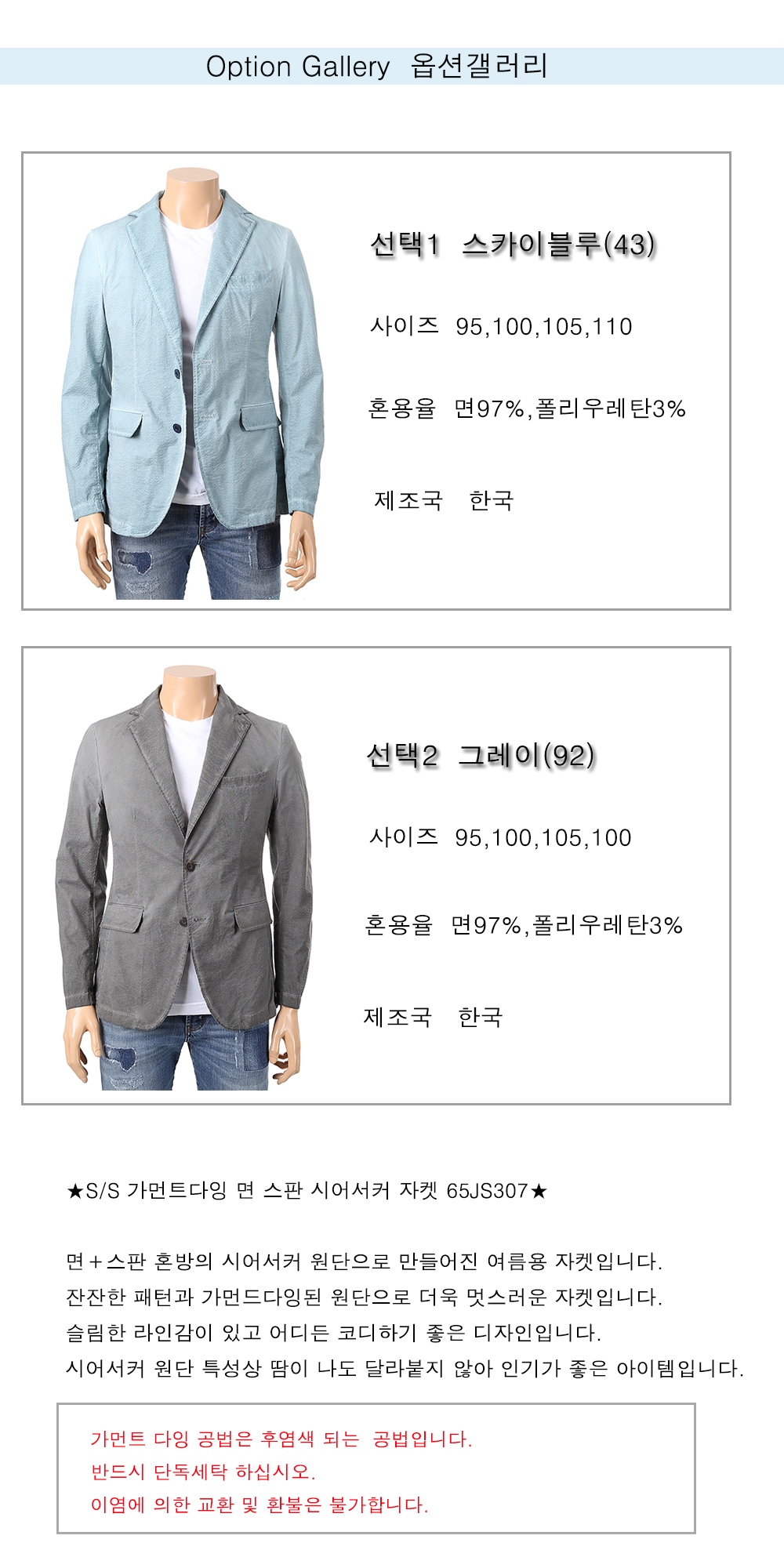 S/S 가먼트다잉 면 스판 시어서커 자켓 65JS307