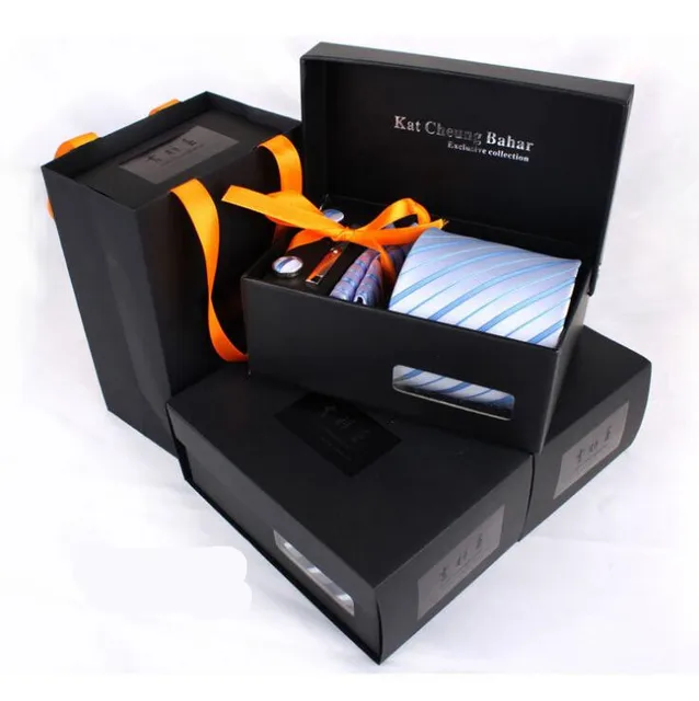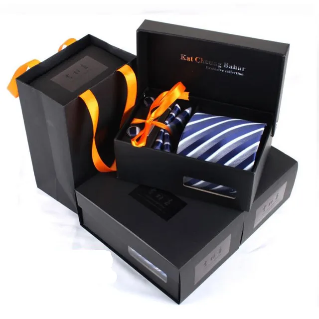 | [해외]목 넥타이 남성 신랑 웨딩 비즈니스 넥타이 스트라이프 자카드 넥타이 남성 웨딩 파티 패션 액세서리 선물 상자 가방 |