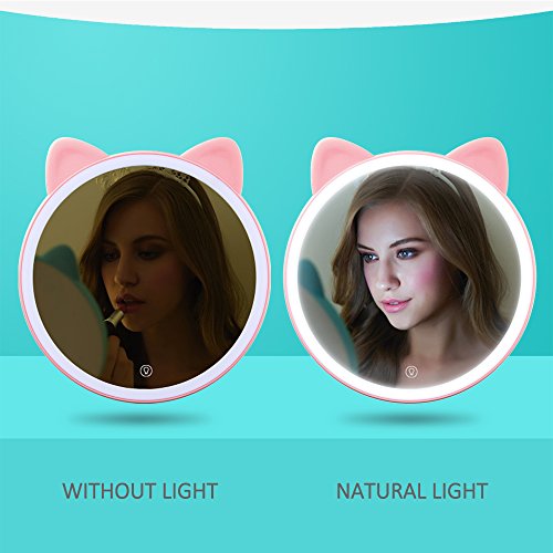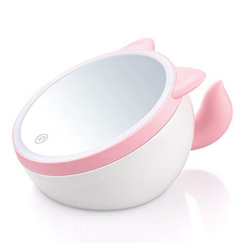 RETECK Makeup Mirror with Lights, Led Light Touch Screen Lighted Vanity Mirror with Natural light Fox,Pink
